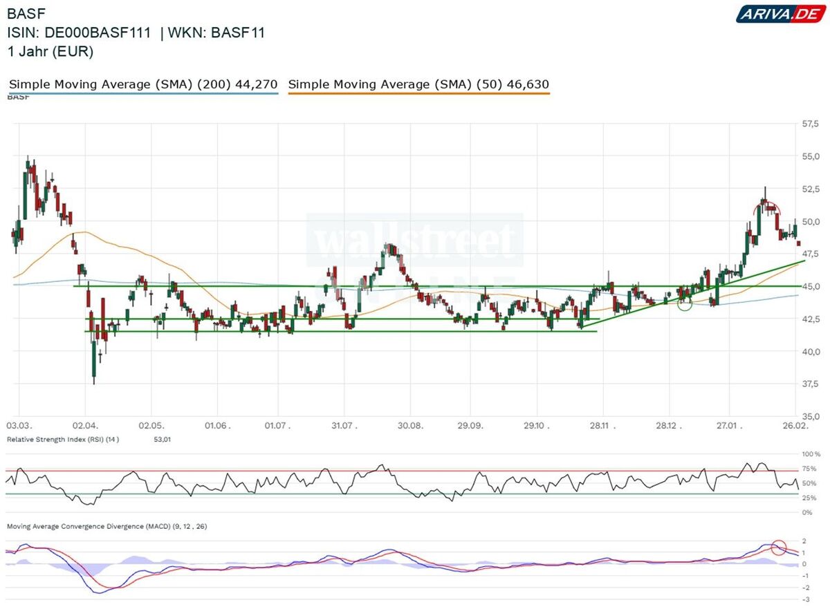 - Aktie eröffnete unter 48 Euro mit einem Minus von rund 3 %.