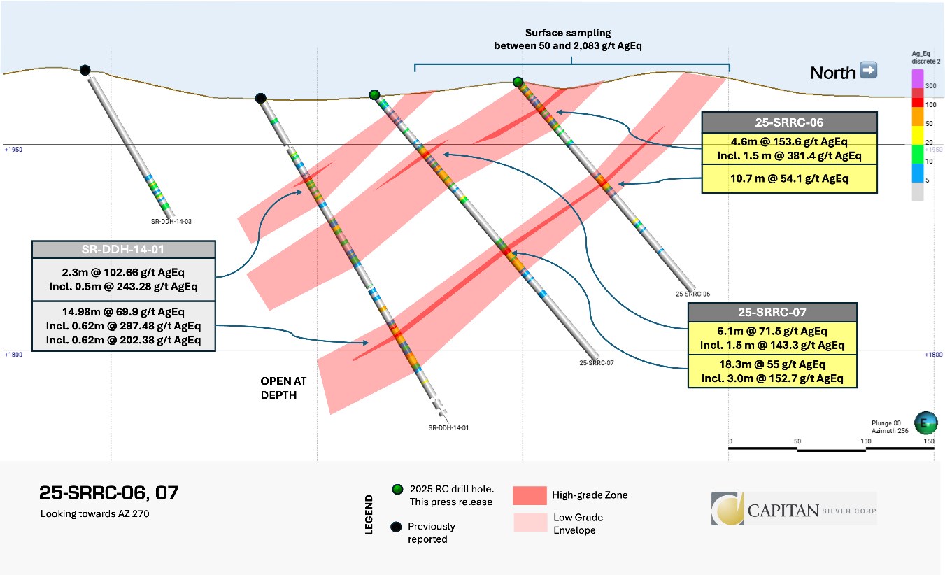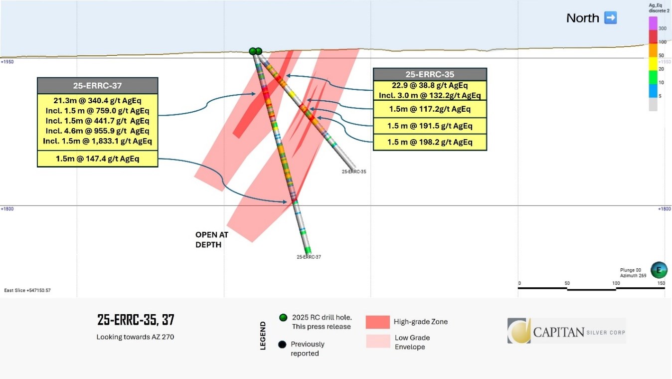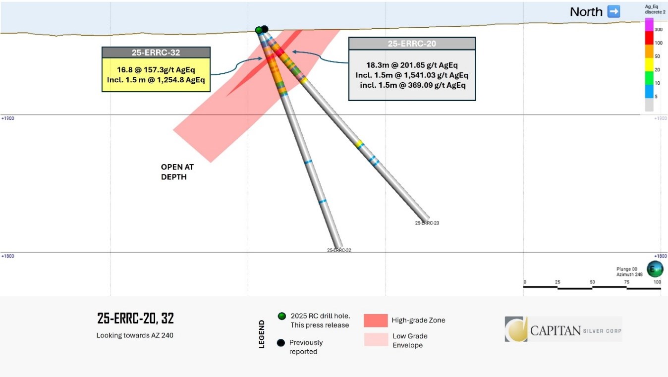 Previously announced drill hole 25-ERRC-20 intersected 1,541 g/t AgEq over 1.5m, within a broader interval of 201.65 g/t AgEq over 18.3m (see news release of Capitan dated October 14, 2025)
