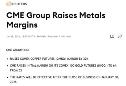 Ein Beleg dafür sind z.B. die Anhebungen von Margin-Hinterlegungen durch die großen Rohstoffbörsen wie die CME in Chicago, die am 29. Januar, einen Tag vor dem Crash, die Margin-Anforderungen für Einlagen erhöhte: