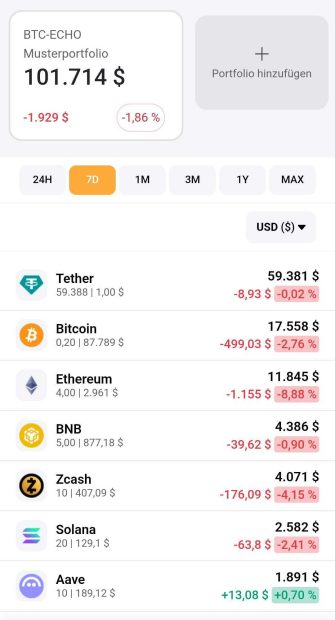 Das BTC-ECHO Musterdepot ist leicht im Minus