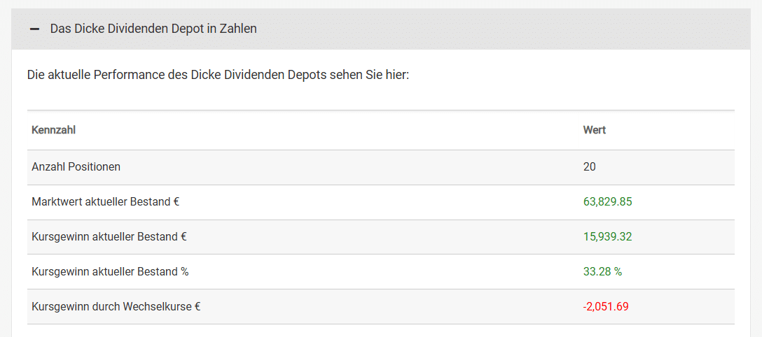 Als Abonnent unseres Börsenbriefs kannst du dieses Depot-Update über das Dicke Dividenden Depot weiterlesen. Sichere dir hier den Börsenbrief und erhalte vollen Zugriff auf Echtgeld-Depots, lukrative Artikelserien und Analysen.