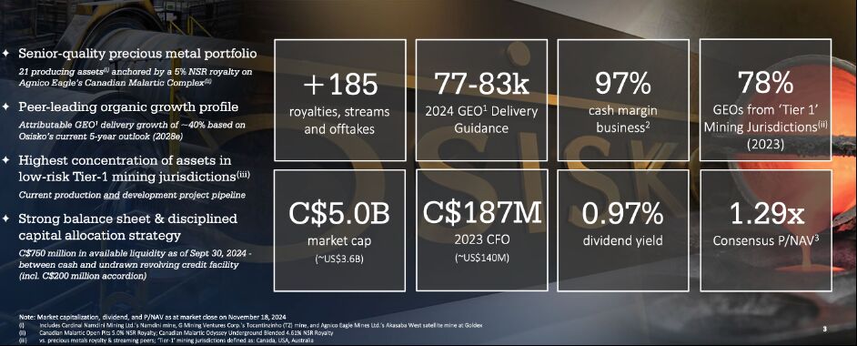 es gibt sogar noch eine andere Möglichkeit, die sogar gegenüber anderen herausragend ist. Dieses herausragende Investment-Vehicle sind Unternehmen, die ein Royalty- und Streaming-Modell verfolgen. Ein Ansatz, der Anlegern nicht nur Stabilität, sondern auch außergewöhnliche Wachstumschancen bietet. Zu den Spitzenunternehmen in diesem Sektor zählt definitiv Osisko Gold Royalties (WKN: A115K2), ein Unternehmen, das die Branche mit seiner einzigartigen Strategie prägt.