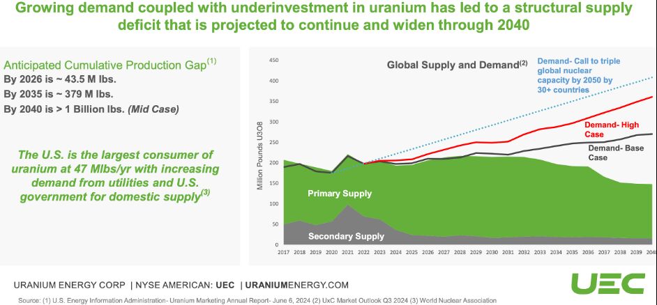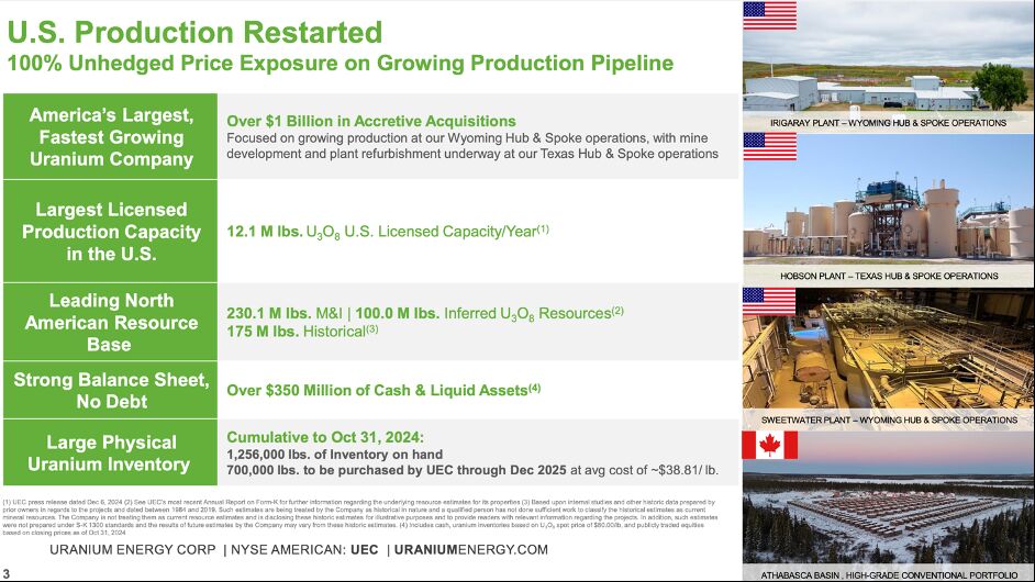 Mit über 350 Mio. USD an liquiden Mitteln und keiner Verschuldung verfügt Uranium Energy (WKN: A0JDRR) über die finanzielle Flexibilität, auf Marktveränderungen zu reagieren und Wachstumschancen zu nutzen. Die kürzlich abgeschlossene Übernahme von Rio Tintos ‚Sweetwater'-Anlage und die stetige Ausweitung der Kapazitäten unterstreichen die Fähigkeit des Unternehmens, aus seiner Stärke heraus zu agieren.