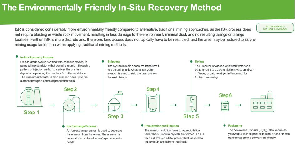 Uranium Energy Corp. (WKN: A0JDRR) ist perfekt positioniert, um diese Welle zu reiten. Als mittlerweile führendes Unternehmen im Bereich ‚In-Situ Recovery‘ (‚ISR)‘, einer außerordentlich umweltfreundlichen und kosteneffizienten Methode der Uranförderung, bietet diese Firma Investoren Zugang zu einem Markt mit gigantischem Wachstumspotenzial.