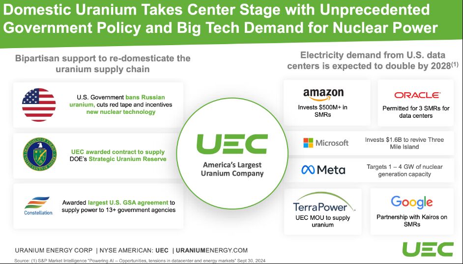 Die Welt erlebt eine Energie-Revolution, und Uran steht im Mittelpunkt. Ob es die Expansion von ‚Small Modular Reactors‘ (‚SMRs‘) ist, die Unterstützung durch Tech-Giganten wie Google, Oracle, Microsoft, Meta und Amazon oder die geopolitischen Spannungen, die die heimische Produktion priorisieren – alle Zeichen deuten auf einen Boom im Uranmarkt hin.