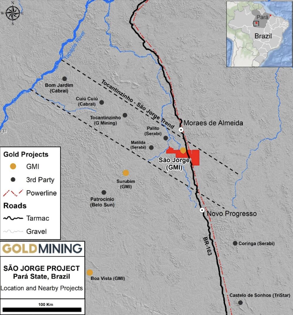 Hinzu kommt, dass GoldMinings (WKN: A2DHZ0) 45.997 Hektar große Portfolio-Perle auf dem ‚Tocantinzinho‘- ‚São Jorge‘-Trend und damit in einem Gebiet, das in den letzten vierzig Jahren phänomenale 30 Millionen Unzen geliefert hat. Hinzu kommen die hochgradigen Nachbarn wie das Unzen-Powerhaus ‚Palito‘ von Serabi Gold Plc., die seit 2014 jährlich satte 30.000 bis 40.000 Unzen Gold produziert ebenso wie die ‚Tocantinzinho‘-Mine, betrieben von G Mining Ventures Corp., die im Juli 2024 an den Produktionsstart ging und während ihrer Lebensdauer von derzeit etwa 10,5 Jahren insgesamt fette 1,83 Millionen Unzen Gold herstellen wird und sogar 196.000 Unzen während ihres Produktions-Peaks in den ersten fünf Jahren.