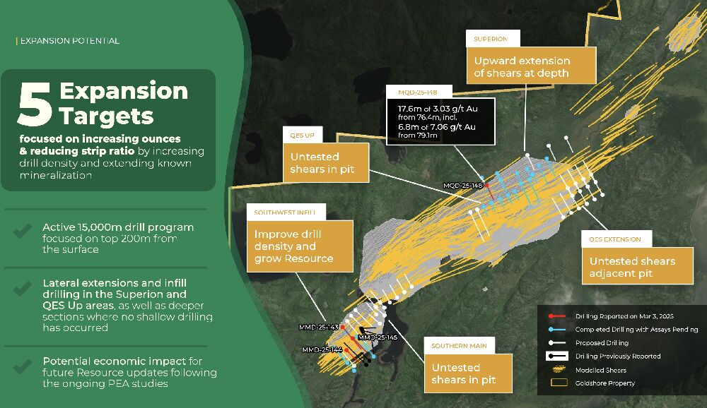 Mit einem aktuellen Aktienkurs von nur 0,33 CAD und einer Marktkapitalisierung von rund 110 Mio. CAD liegt Goldshore Resources (WKN: A3CRU9) weit unter seinem potenziellen Wert. Die bevorstehenden Meilensteine, darunter die ‚PEA Plus‘ und weitere Bohrprogramme, bieten enormes Kurspotenzial – insbesondere in Anbetracht des steigenden Goldpreises, der bereits deutlich über den konservativen Annahmen liegt.
