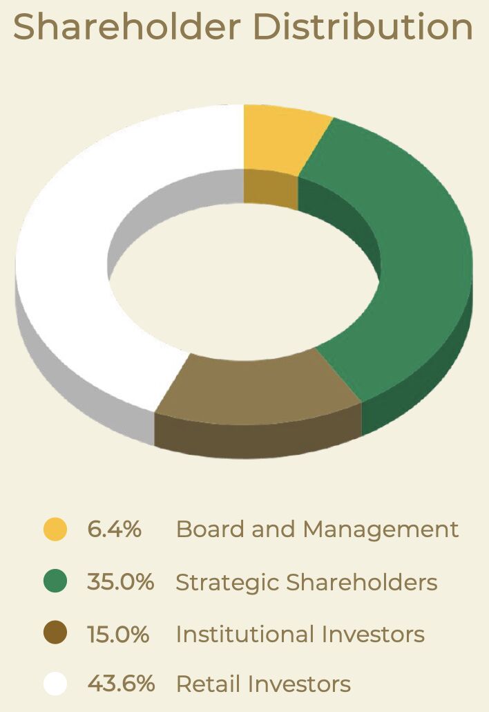 Da insgesamt mehr als 57 % der Aktien in festen Händen sind, bleiben für Retail Investoren nicht einmal 43 %!