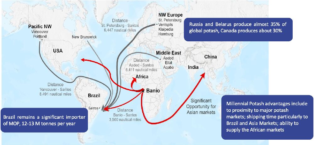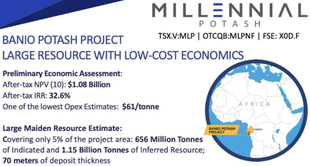 Und als wäre das nicht schon genug, spielt Millennial Potash (WKN: A3DXEK) auch geopolitisch in der Topliga. Gabun selbst, wo das ‚Banio‘-Projekt beherbergt ist, punktet mit dem Bau eines neuen Tiefwasserhafens und eines Kraftwerks in direkter Nähe zum ‚Banio‘-Projekt. Präsidentielle Unterstützung inklusive. Das bedeutet: hohe Genehmigungssicherheit, logistische Exzellenz – und Zugang zu den wichtigsten Kalimärkten der Welt, darunter Brasilien, Indien, Europa und Asien.