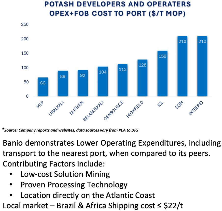Doch es bleibt nicht bei Gesteinsdaten: Die Wirtschaftlichkeit des Projekts ist ein echter Wachmacher. Ein nach Steuern gerechneter ‚NPV (10)‘ von rund 1,08 Mrd. US-Dollar und eine interne Rendite von 32,6 %! Die Förderkosten sind nahezu konkurrenzlos, mit nur 61,- US-Dollar pro Tonne MOP. Wer den Kalimarkt kennt, weiß: Das ist Weltklasse.