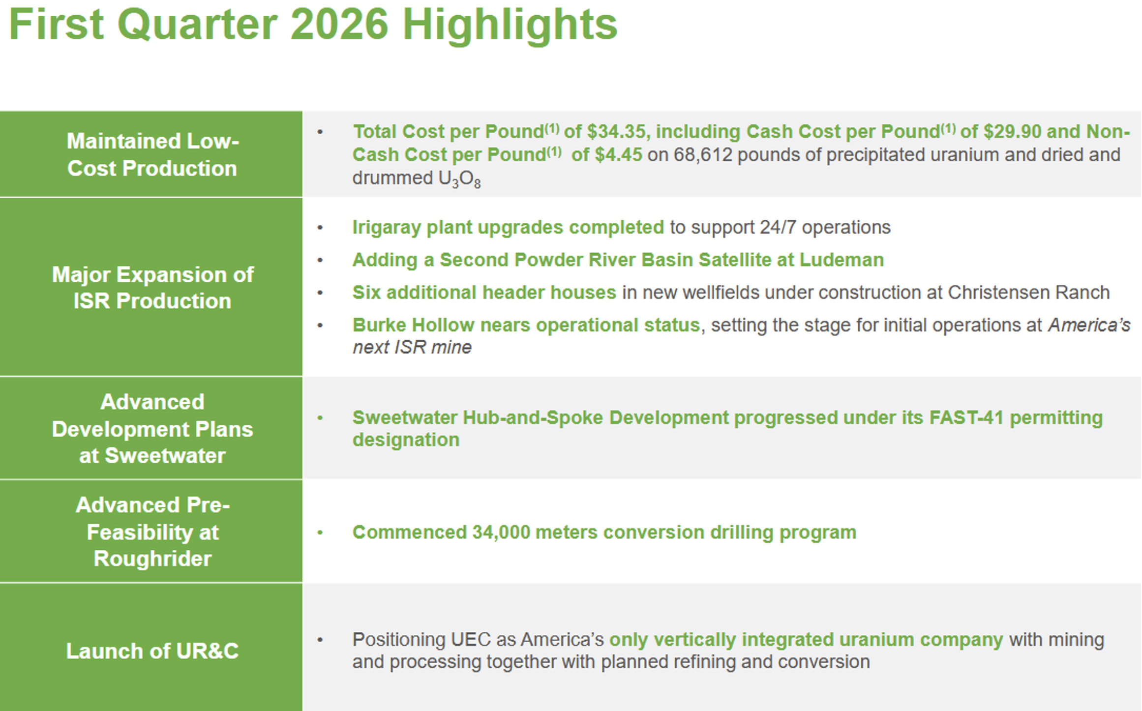 So wurden satte 68.612 Pfund präzipitiertes Uran und U3O8-Konzentrat zu schmalen 34,35 USD pro Pfund hergestellt und damit das branchenführende kostengünstige Produktionsprofil gestärkt.