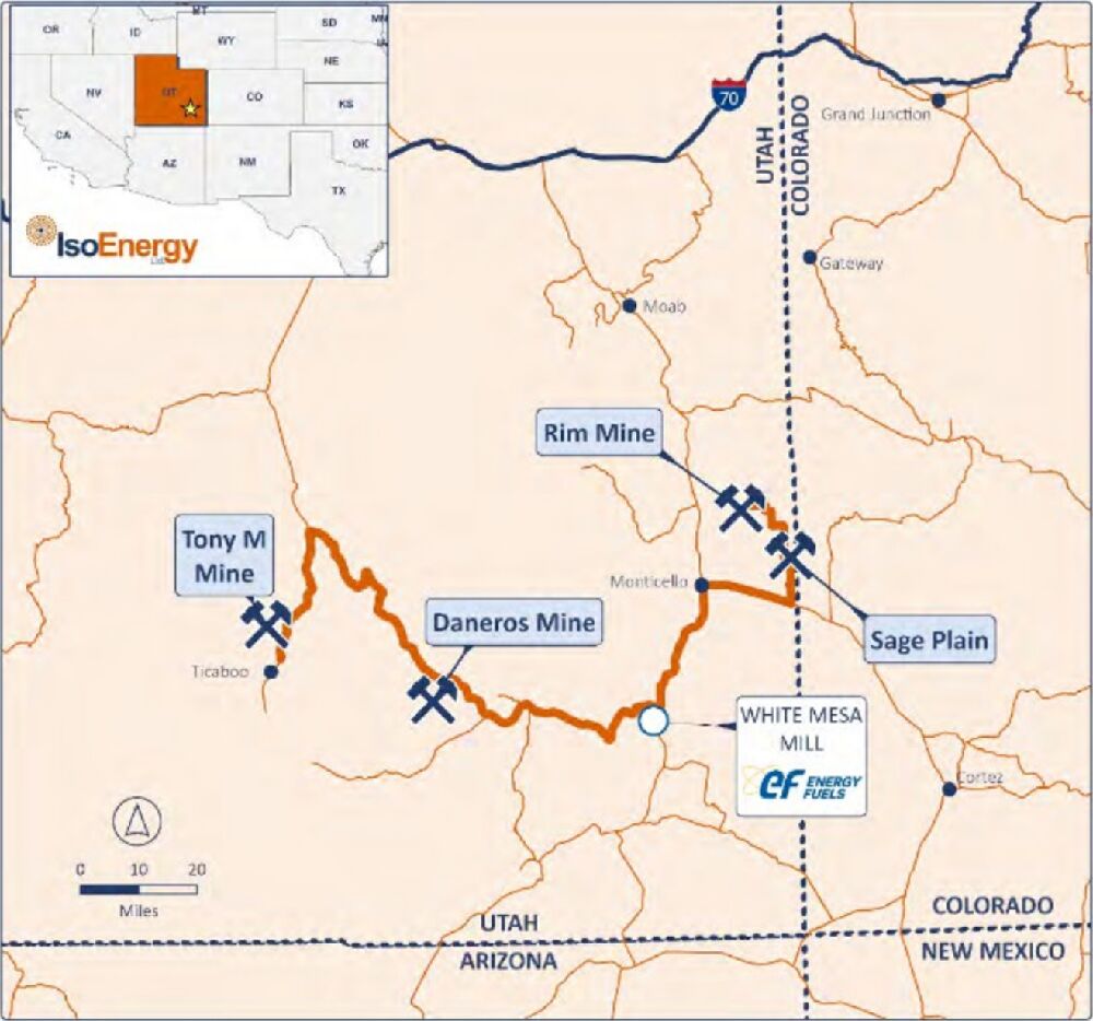 Ein weiterer grandioser Pluspunkt ist, dass sich alle drei Minen in LKW-Entfernung zur ‚White Mesa‘-Mühle befinden. Das ist ganz nebenbei die einzige konventionelle Uranmühle in den USA mit einer grandiosen Kapazität von jährlich über 8 Millionen Pfund U3O8. Mit dem Betreiber Energy Fuels hat IsoEnergy (WKN: A412Q0) nun auch ein Abkommen über die Lohnverarbeitung abgeschlossen.