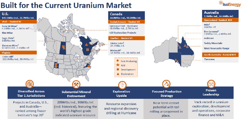 Alles in allem sind das grandiose Aussichten vor allem für Uran-Produzenten, die in sicheren Ländern sitzen. Hier genau kann IsoEnergy (WKN: A412Q0) mit einem bombastischen Portfolio punkten.