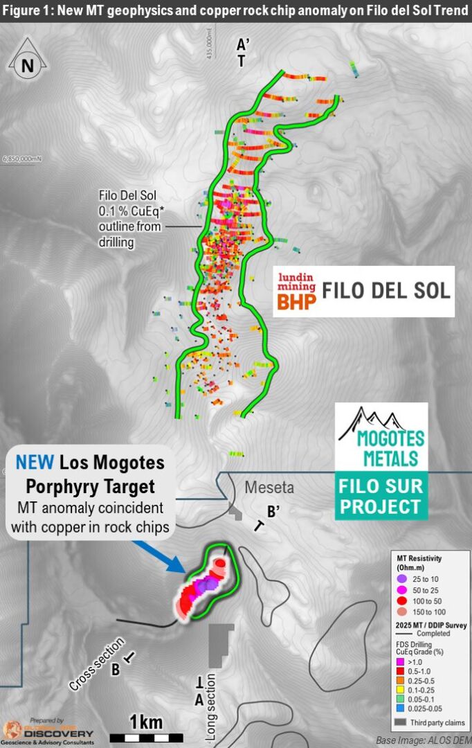 Nur 1,2 km südlich von ‚Filo del Sol‘ definiert Mogotes (WKN: A3ENQ6) das Prospektionsgebiet ‚Meseta Ost & West‘ direkt auf dem strukturellen Trend.