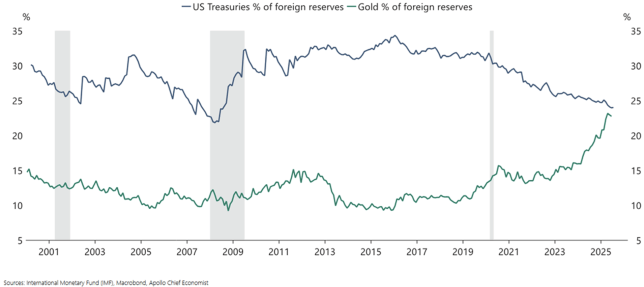 Stichwort „De-Dollarisierung“: Mit Blick auf anhaltende makroökonomische Unsicherheiten könnten die globalen Zentralbanken in absehbarer Zeit mehr Gold als US-Dollarhalten. Über die Statistik hinaus, verstärken die Goldkäufe der Zentralbanken die Nachfragezyklen, weil sie professionellen und privaten Investoren ebensolche Kaufimpulse geben.