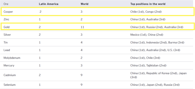 Perus beeindruckendes Ranking in der weltweiten Metallproduktion: