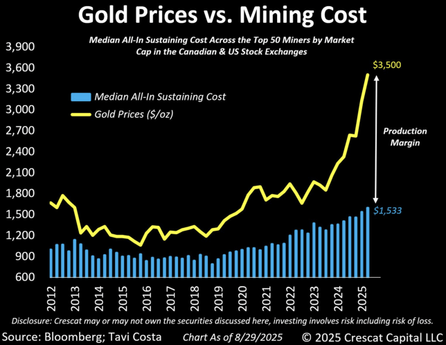 In diesem Szenario bieten Investments in Goldminenunternehmen die Möglichkeit auf einen starken Hebel, weil diese Unternehmen von höheren Gewinnen und Cashflows profitieren. Hinzu kommt, dass viele dieser Player immer noch auf Basis eines sehr viel niedrigeren Goldpreises gehandelt und bewertet werden, was zu erheblichen Neubewertungen führen kann.