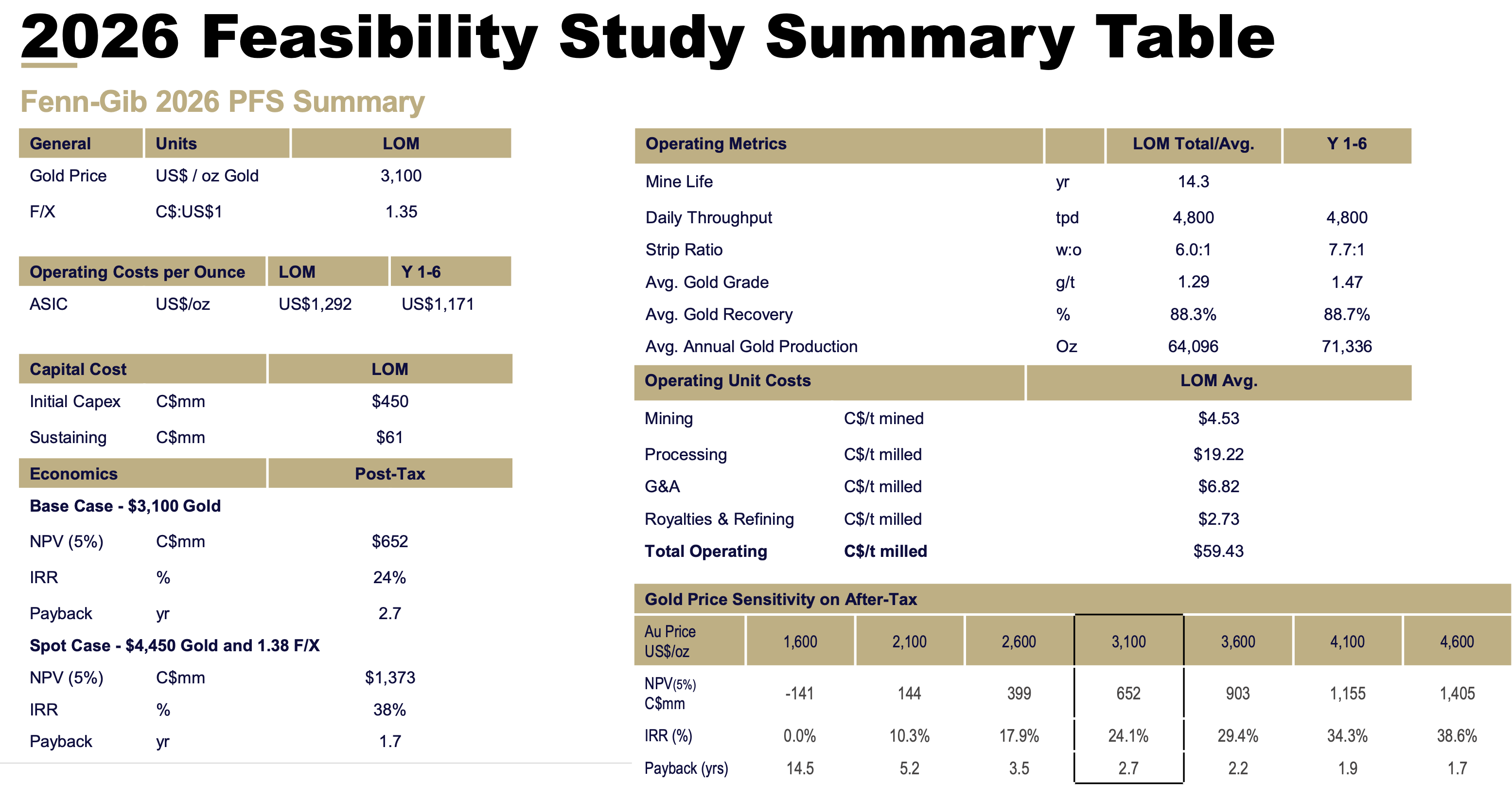 Mayfair Gold Corp. (WKN: A41X3D) legte erst gestern eine frische PFS vor! Ein Spot-Szenario, das den Goldpreis-Hebel sichtbar macht! Dieses kanadische Gold-Entwicklungsunternehmen mit einem klaren Fokus auf sein Fenn-Gib-Gold-Projekt im etablierten Timmins Gold District in Ontario drückt mächtig aufs Gaspedal.