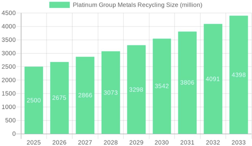 Mit dem Kauf von Metallix fügt Sibanye-Stillwater (WKN: A2PWVQ) seinem stark wachsenden Recycling-Business einen weiteren Renditetreiber hinzu und positioniert sich damit perfekt auf dem mächtig anziehenden Platinmetalle-Recyclingmarkt. Der nämlich soll Analysen zufolge bis zum Jahr 2033 ein Volumen von phänomenalen fast 4,4 Mrd. USD erreichen und wird damit fast doppelt so groß sein wie aktuell mit 2,5 Mrd. USD. In dieser Zeit soll die durchschnittliche jährliche Wachstumsrate bei satten 7 % liegen.