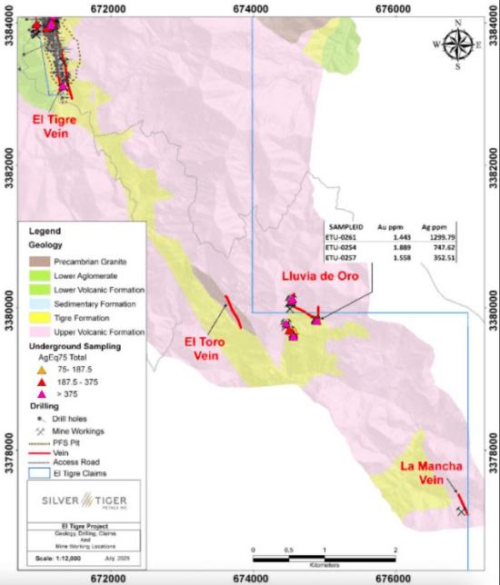 Ein Fokus von Silver Tiger Metals (WKN: A2P4YL) Explorationsteams lag dabei darauf, historische Stollen und Abbaugänge in eben diesen ‚Northern Veins‘ zu lokalisieren, zu katalogisieren, zu kartieren und Proben zu entnehmen, mit dem übergeordnetem Ziel, geologische Ähnlichkeiten der dortigen mineralisierten Systeme mit den gut erschlossenen Adern ‚El Tigre‘, ‚Seitz-Kelly‘ und ‚Sooy‘ zu bestätigen.