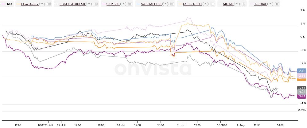 Keine Spur von Ferienruhe an den Märkten. Die Trump’schen Zollsalven, gemischte Signale von der Konjunkturfront und volatile Rohstoffpreise sorgen für einen hochgradig spannungsgeladenen Augustauftakt. Wer auf ruhige Sommerwochen spekuliert hat, wird spätestens jetzt eines Besseren belehrt. Der Juli endete mit Quartalszahlen, Makroschocks und Zolldrohungen. Diese Aneinanderreihung der Ereignisse, die sich quasi die Klinke in die Hand gaben, waren schlussendlich zu viel für die Märkte, die sich daraufhin eine Auszeit gönnten.