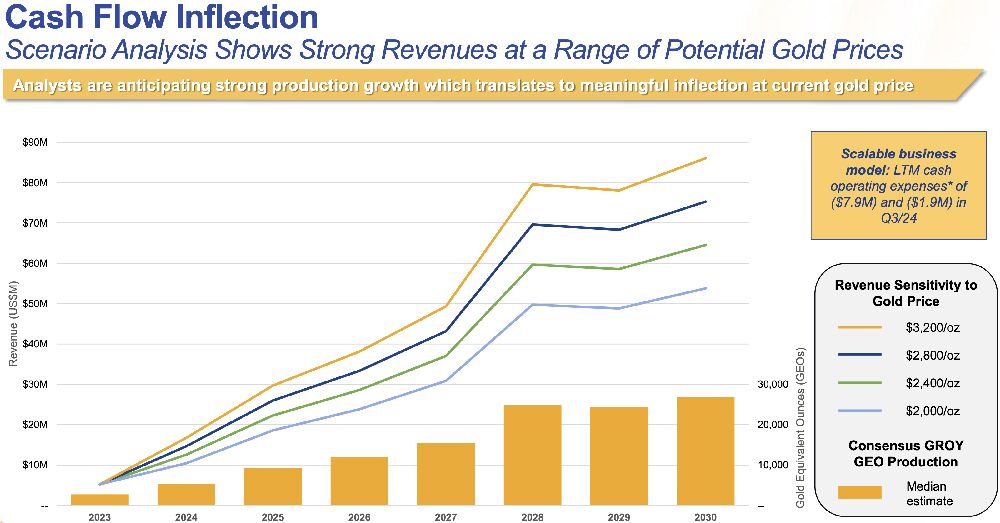 Starkes Wachstum im vierten Quartal: Für das vierte Quartal 2024 erwartet Gold Royalty ein nahezu dreifaches Umsatzwachstum im Vergleich zum Vorjahr.