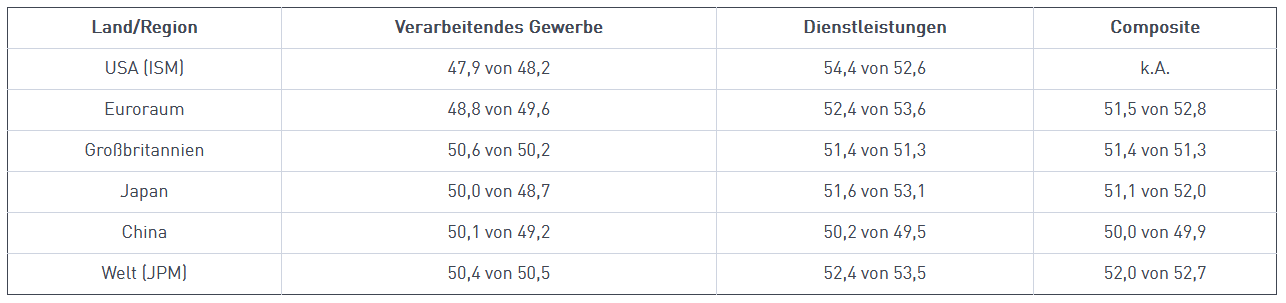 Die amerikanischen Einkaufsmanagerindizes waren im Dezember uneinheitlich. Der PMI für das Verarbeitende Gewerbe fiel auf den niedrigsten Wert seit 14 Monaten. Der Dienstleistungsindex stieg hingegen auf ein 14-Monats-Hoch.
