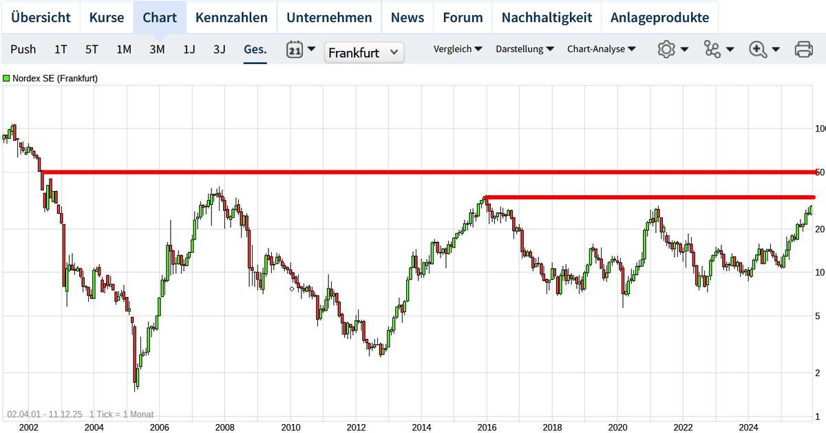 Auch das Bankhaus Metzler sieht weiteres Potenzial, hebt das Kursziel auf 30 Euro an und lobt insbesondere den Wiedereinstieg von Nordex in den großen US-Markt. Ähnlich positiv äußert sich die Citi, die ihre Kaufempfehlung mit einem Kursziel von ebenfalls 30 Euro bestätigt und den Alliant-Vertrag als wichtigen Auftragsanker für 2026 einstuft.