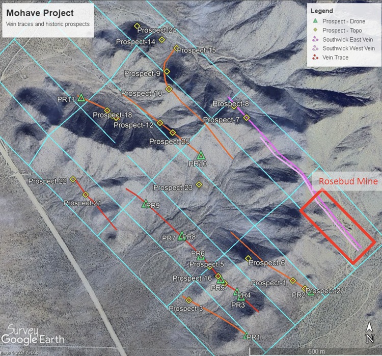 Wer die historischen Gehalte der Rosebud Mine – welche Teil des Mohave Projekts ist - zum ersten Mal liest, muss zweimal hinschauen. 688 g/t Gold und 468 g/t Silber über 0,18 Meter sowie 252 g/t Gold und 341 g/t Silber über 0,46 Meter. Diese Werte, im Jahr 2020 von Burgex Mining Consultants bei der unterirdischen Beprobung bestätigt und durch ALS Laboratories analysiert, sind direkte Gesteinsproben aus den historischen Grubenbauten des North Stope, dem produktivsten Teil des Rosebud-Systems.