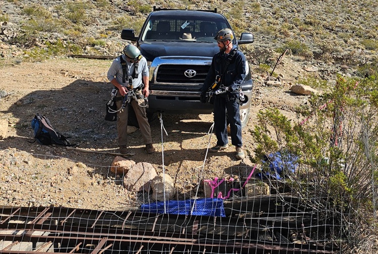Quelle: Kingman Minerals - Mitarbeiter von Burgex führen bei einem kürzlich erfolgten Besuch vor Ort eine oberirdische Inspektion und eine Sicherheitsbewertung des Bereichs um den Produktionsschacht der historischen Rosebud-Mine durch.