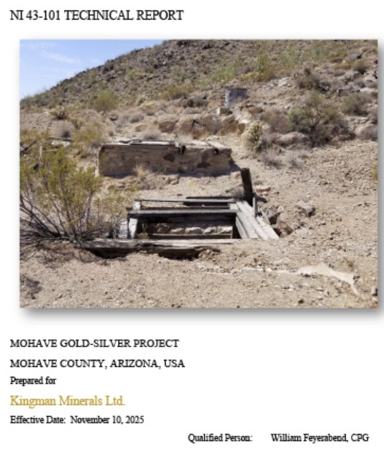 Der NI 43-101 Report ist hier verlinkt: https://kingmanminerals.com/site/assets/files/4035/2025_11_20_mohave_43-101_report_2025_final_for_sedar.pdf