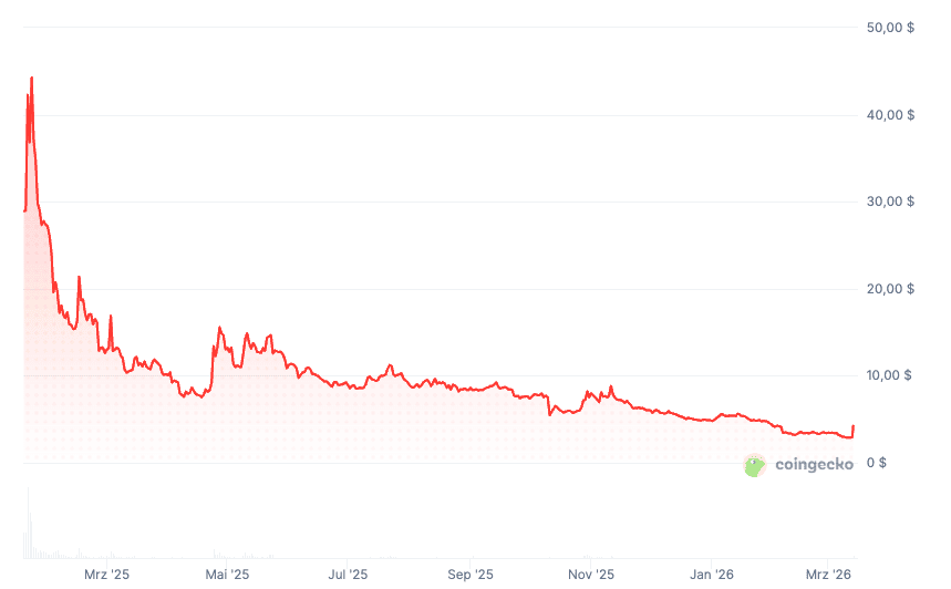 Für Holder der ersten Stunde ist dieser Kurssprung jedoch ein schwacher Trost. Zuvor befand sich das Krypto-Asset in einem anhaltenden Abwärtstrend. Der TRUMP Token fiel Anfang der Woche auf 2,73 US-Dollar und markierte damit den tiefsten Stand seit Januar 2025.